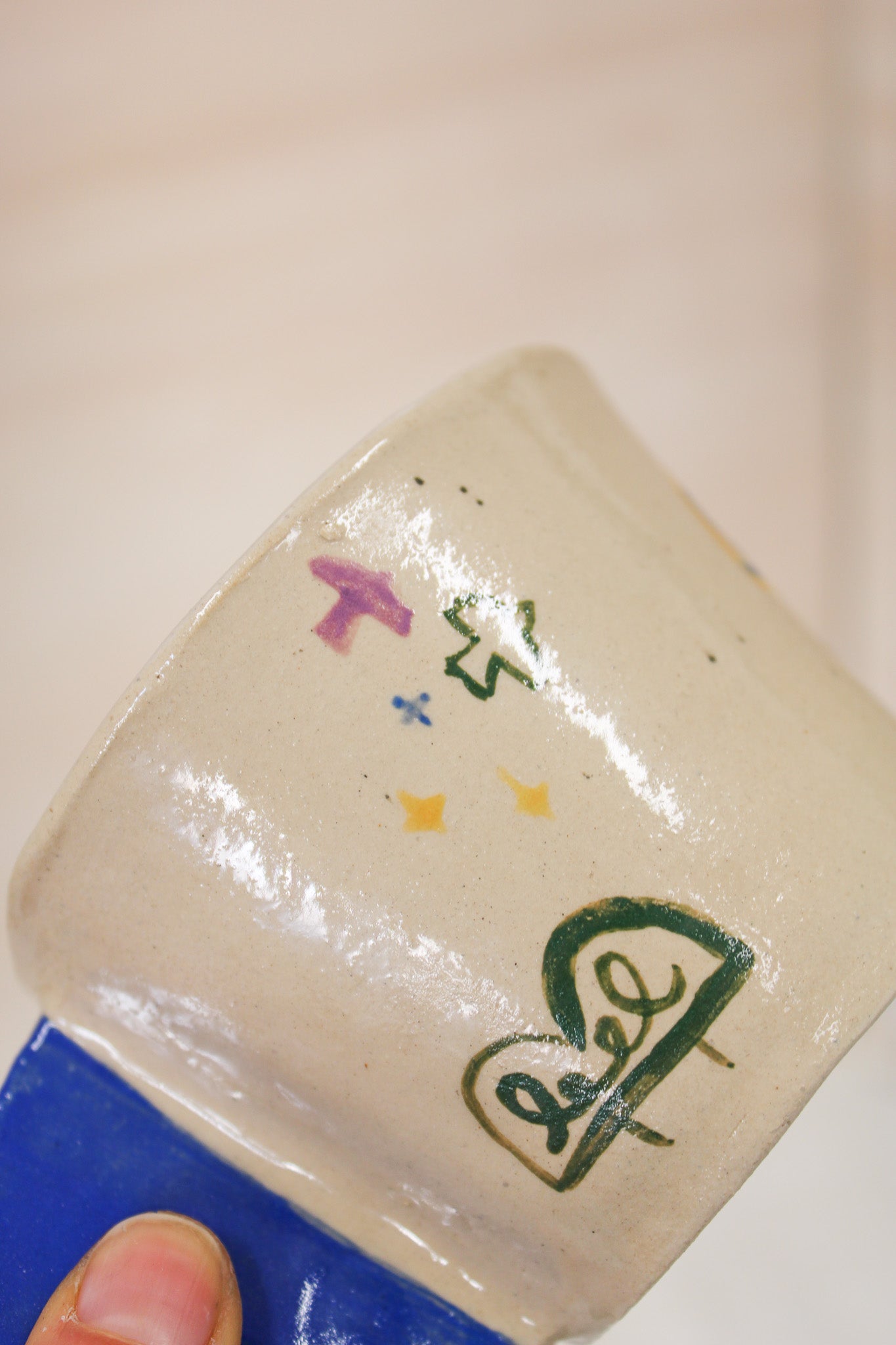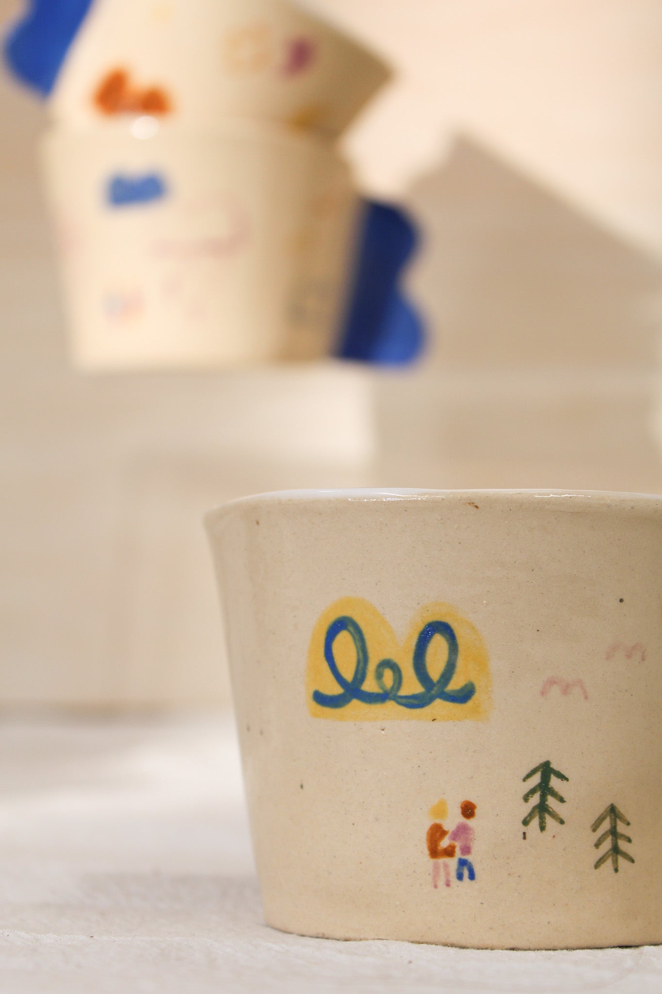 Die Tassen sind handdekoriert, in Form und Glasuren alle ähnlich, unterschiedliche Details.