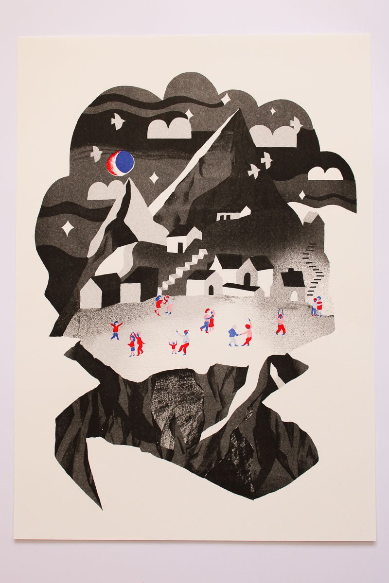 Riso Print "Dorf-Disco" • limitierter Kunstdruck Risografie