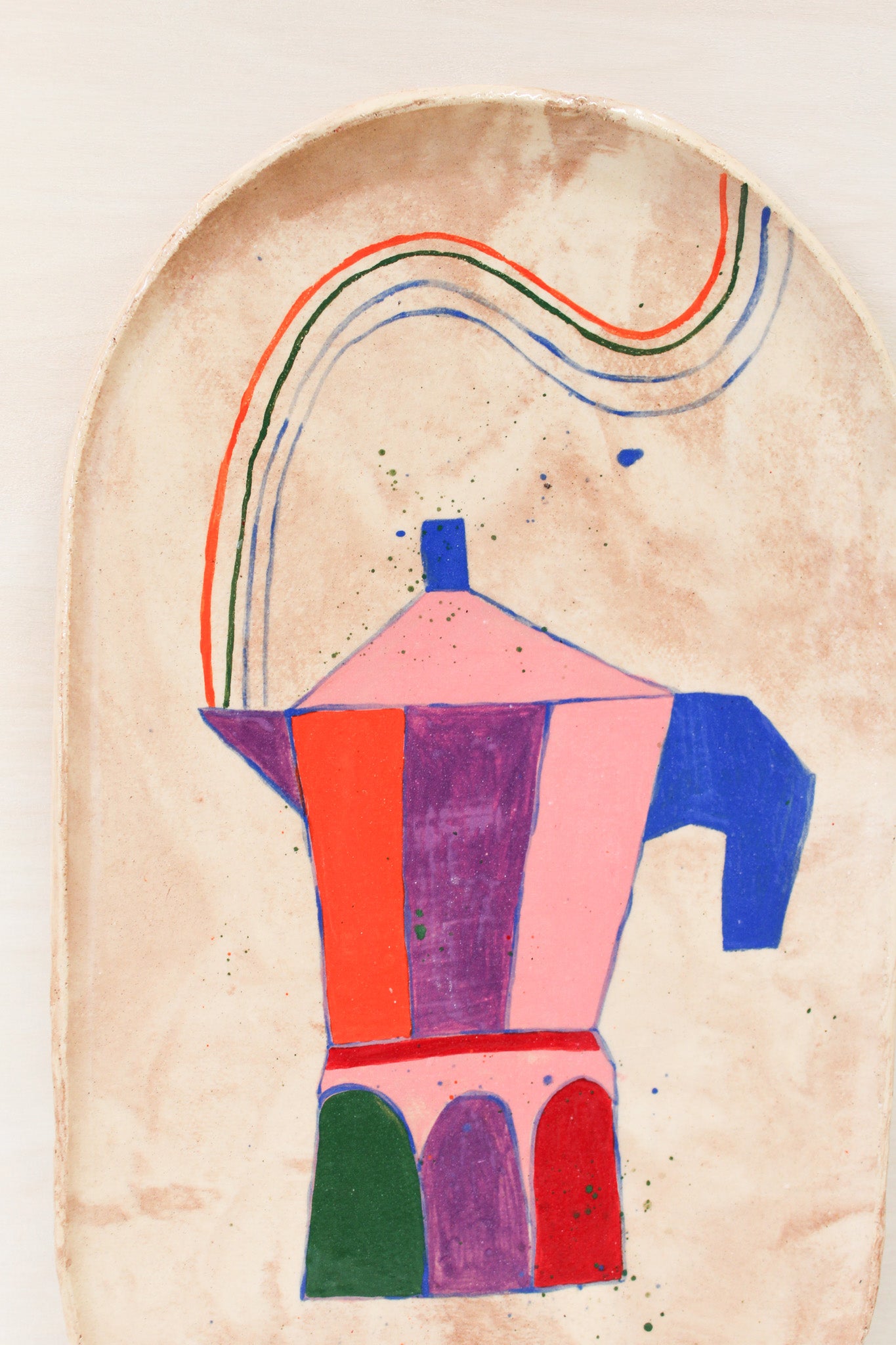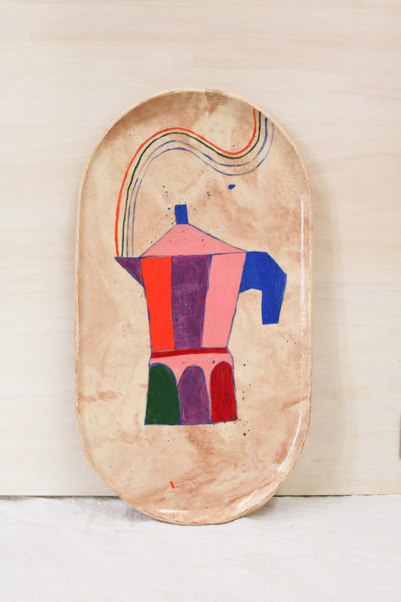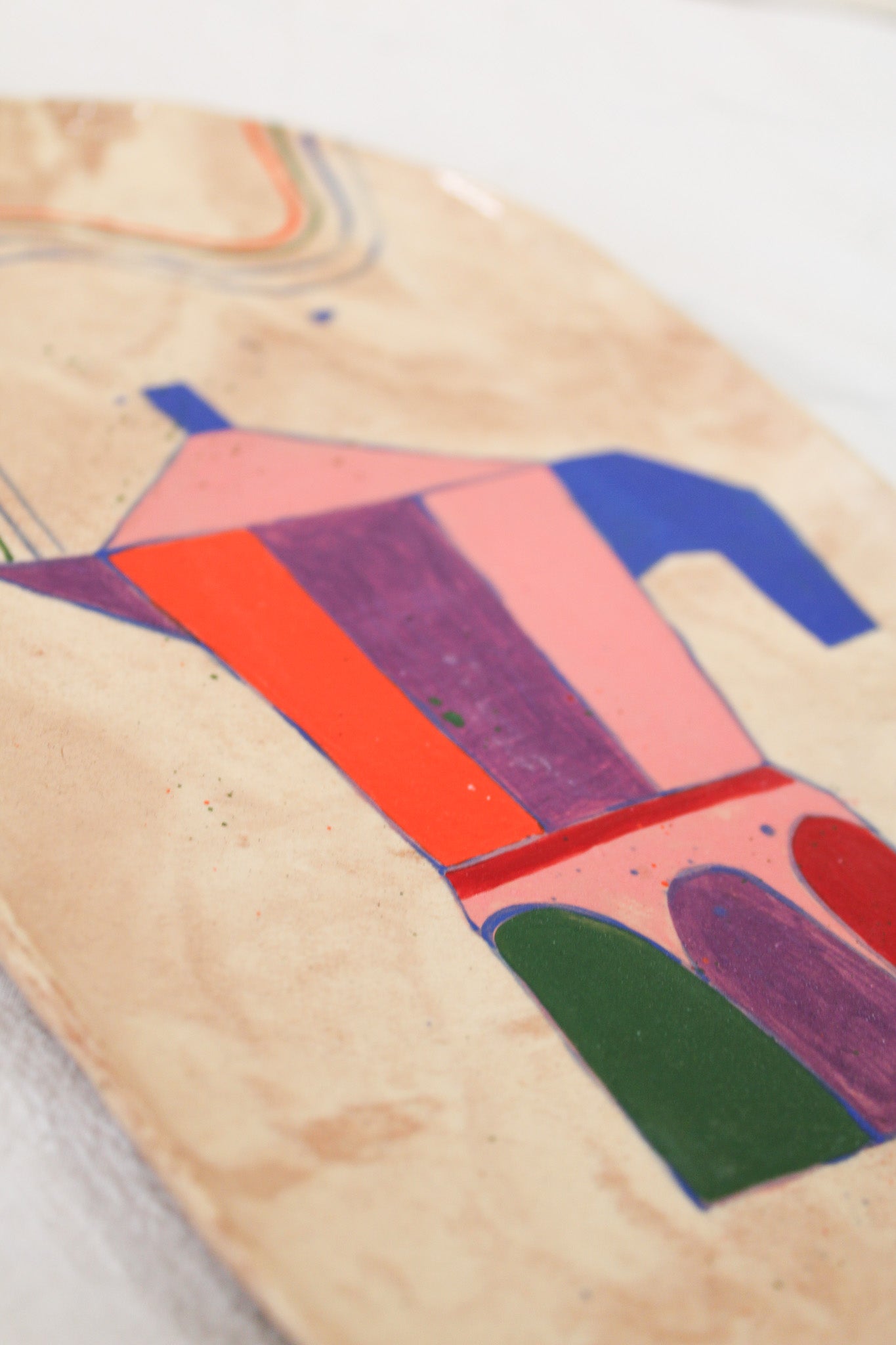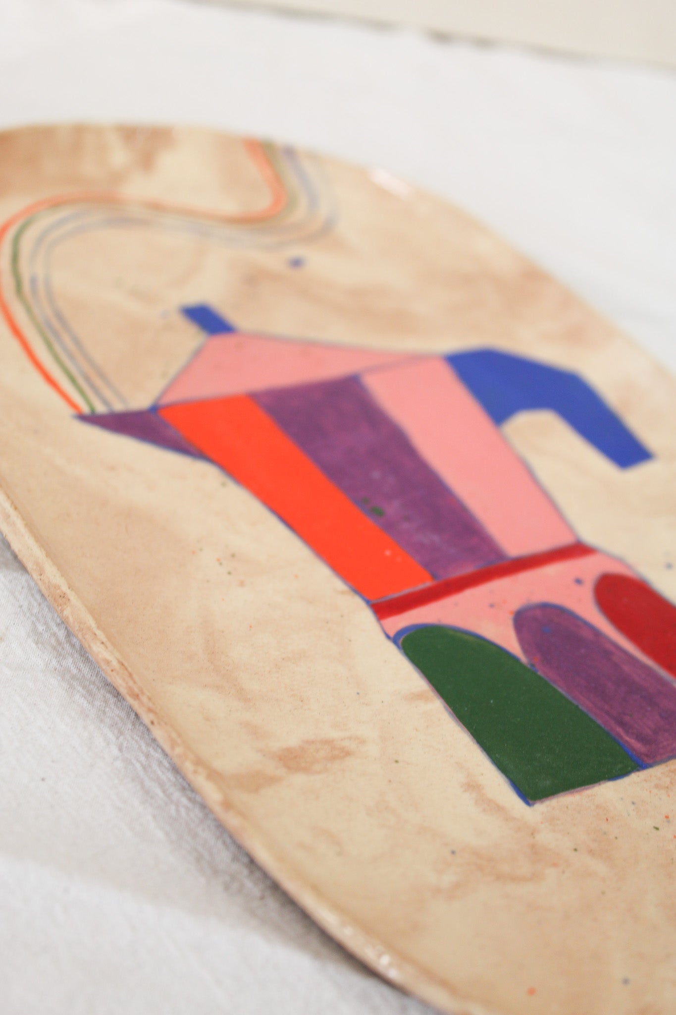 Handbemalter, ovaler Teller, mit leichtem Rand.